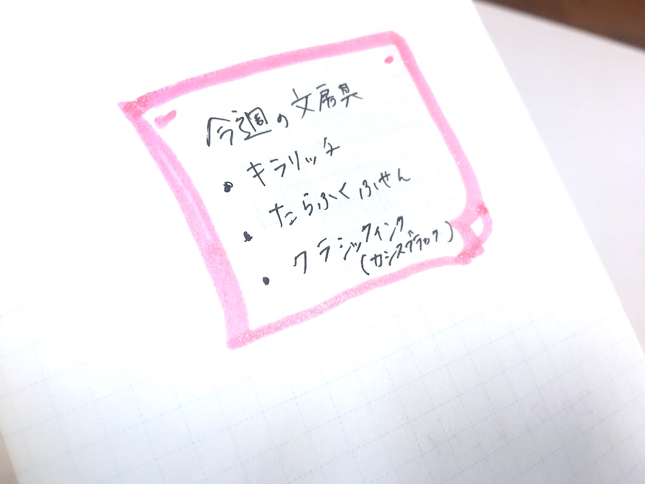 「キラリッチ」はマーキングにはもちろん、手帳や手紙のデコレーションにもぴったり! 私はノートにイラスト枠を書く時にも使っています。「キラリッチ」で書くだけで枠がキラキラとかわいくなるので、なんだか気分も明るくなります。