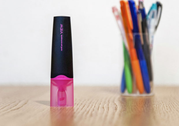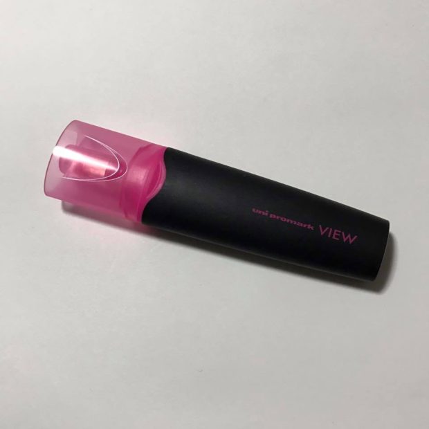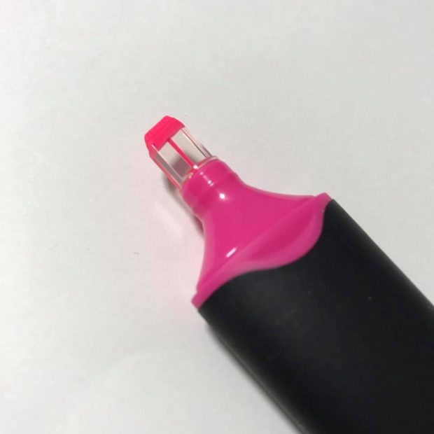 一般的な蛍光ペンと比べると、少し太く、そして短いボディ。