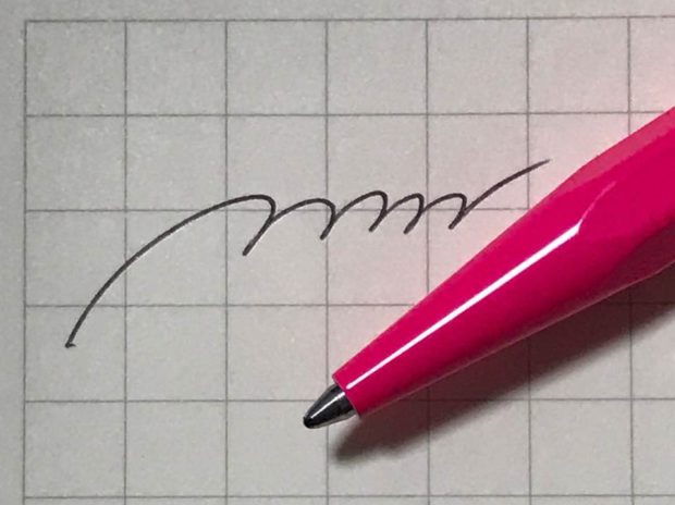 少し粘度がある油性ボールペンの特徴は残しながらも、とってもなめらかな書き心地です。(ゲルインクではありませんのですべるような書き味ではありません。)
