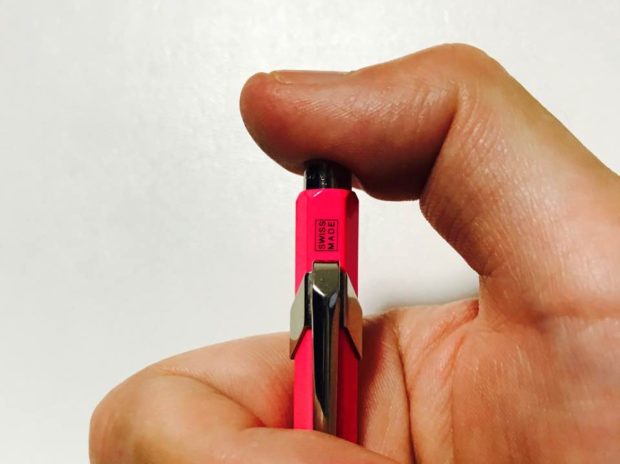 一般的なボールペンよりも短いため、ノックまですぐに親指が届きます。