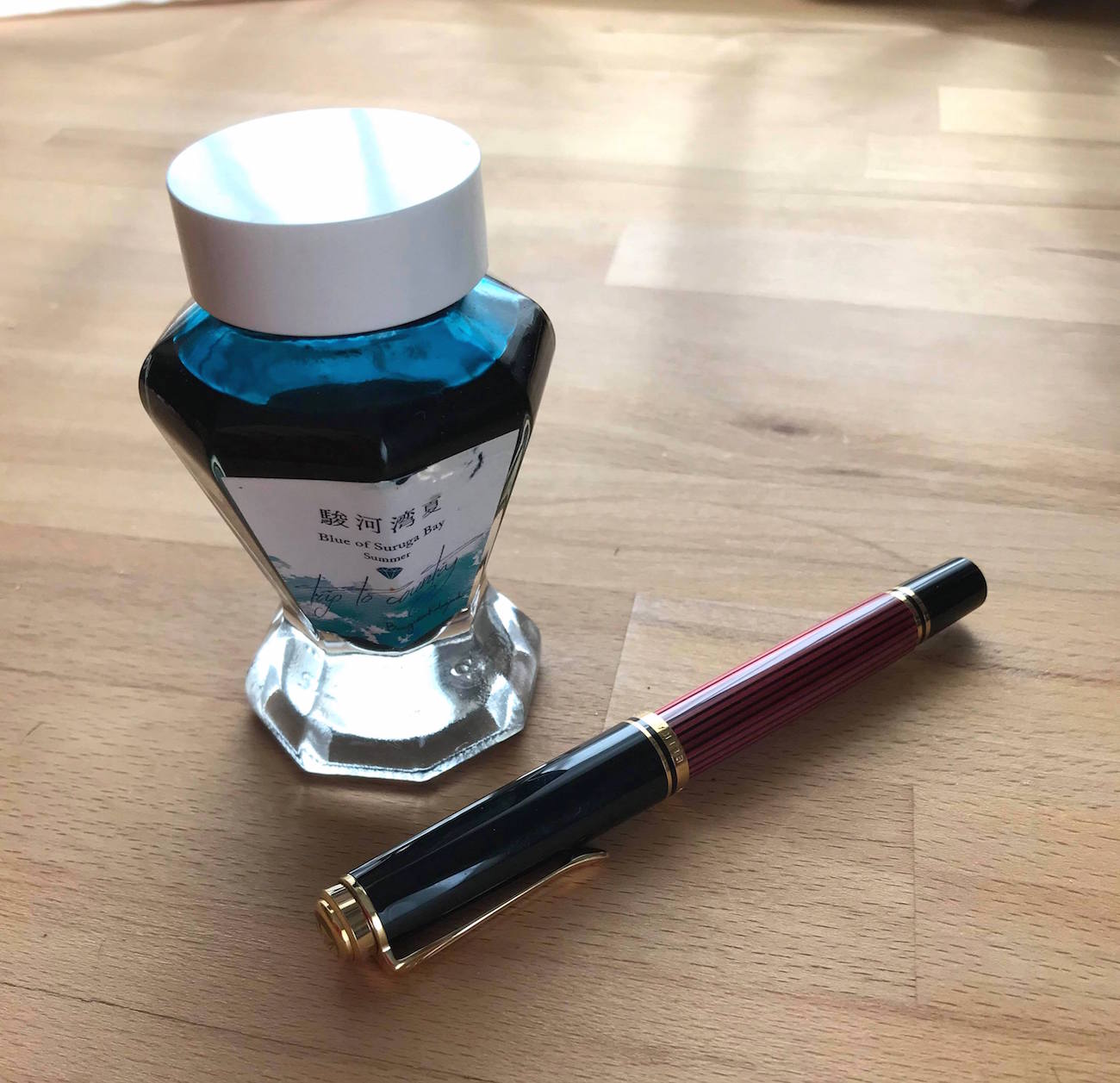 . ▲まおさん愛用のスーベレーンM400とインク「駿河湾」