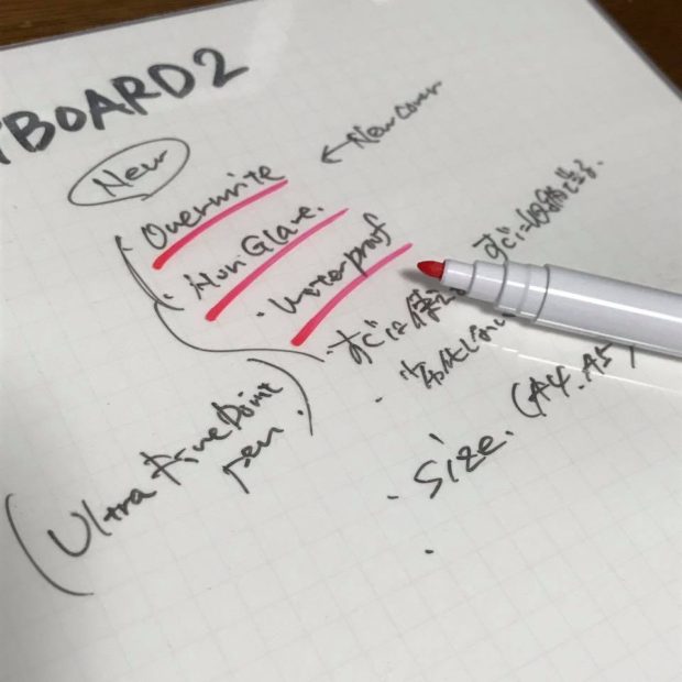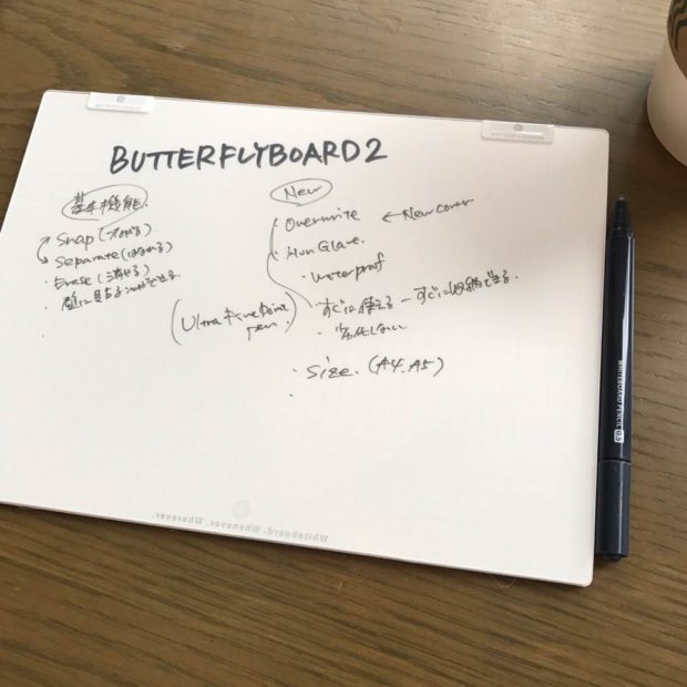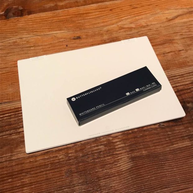 書いた後に写真でデータを保存することができるバタフライボードの特性をさらにサポートするクリアボードになっています。