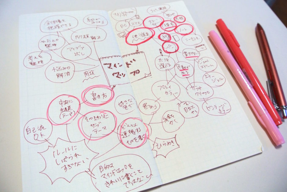 タスク管理をしたり、アイディアや打ち合わせ内容をメモしたり、時には見開き2ページを1枚の紙に見立ててマインドマップを書いたり。12種のカラー展開があるので、1冊使い終わるごとに色を変えるのも楽しみのひとつです。