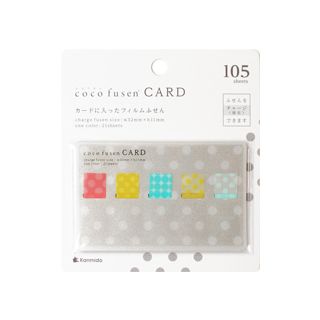 最大210枚ものフィルムふせんをスマートに持ち運べることができる「ココフセンカード」。薄さはわずか1.5mmで大きさはクレジットカードサイズなので手帳のポケットやお財布、定期入れなど身近なカードポケットに入れることができます。