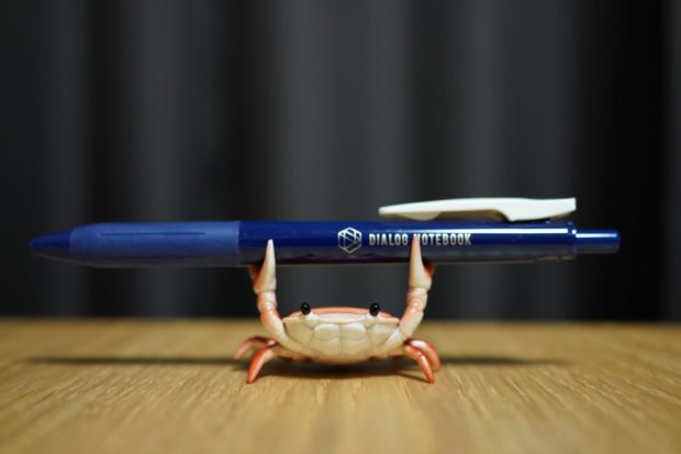 リアルな形状、そしてリアルな大きさの蟹にペンを置けば、ヨイショっとペンを持ち上げてくれている姿がとっても愛らしいです。
