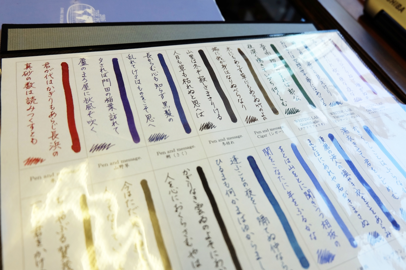 「何のインクを入れましょうか」ということで、ここでも散々悩みました。万年筆のインクは筆圧で表情が変わりますし、その差異の出方もインクによって様々です。
