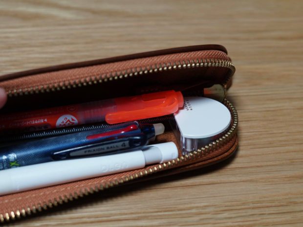 手にとっても見ると結構小さいです。私の小さな筆箱にも入りました。
