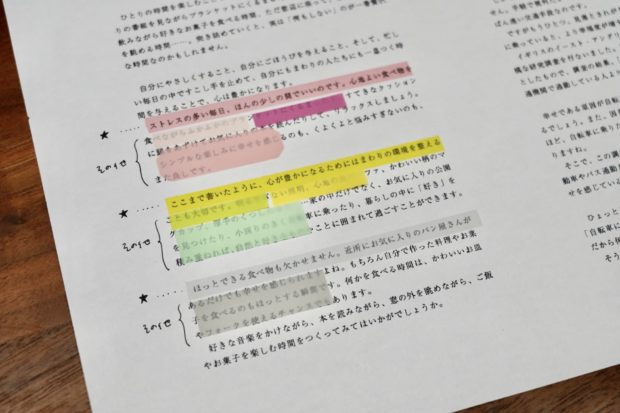 「フセンマーカー」はフィルムフセンです。キレイに貼ってはがせる、そして半透明で下の文字を隠さないという特徴を生かしてマーカーのように使うことができます。