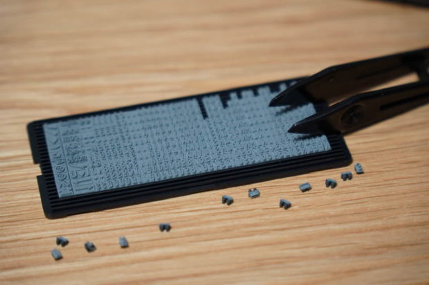 とっても小さなパーツをピンセットで取って、はめこんでいきます。印面は左右逆になりますので順番に気をつけましょう。