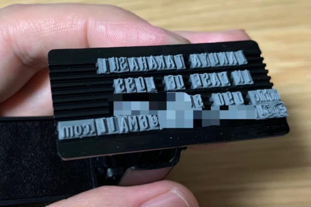 私は、ノートを落とした時に連絡先がわかるようなスタンプを作りました。使っているノートや手帳にどんどん押しています。