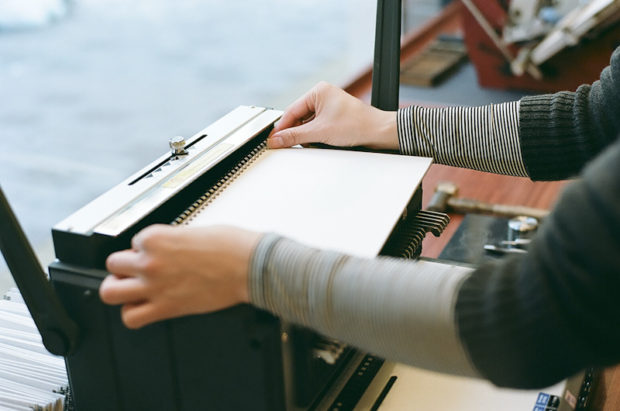 好きな部材を全て選んでスタッフさんに渡すと、一冊ずつ手作業でその場でノートを作ってもらうことができます。