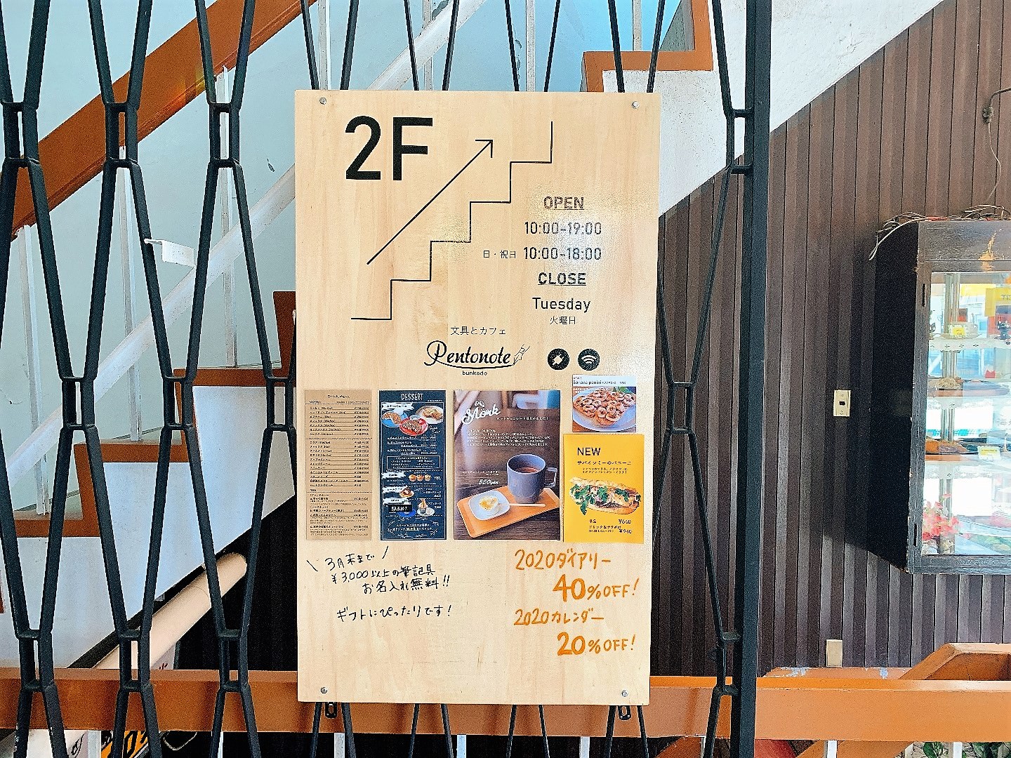 The shop is located on the second floor of a retro building, and there is also a cafe where you can relax.,,ja,You can spread your notebook and spend your own stationery time while enjoying delicious coffee and sweets.,,ja
