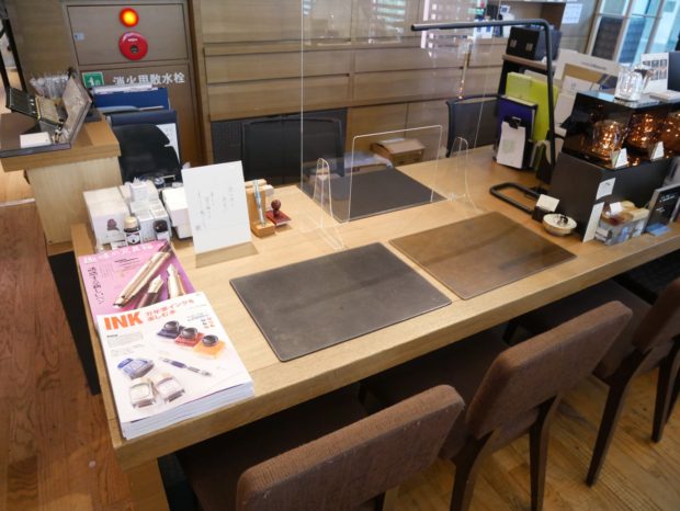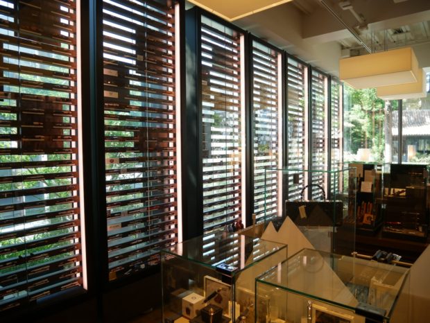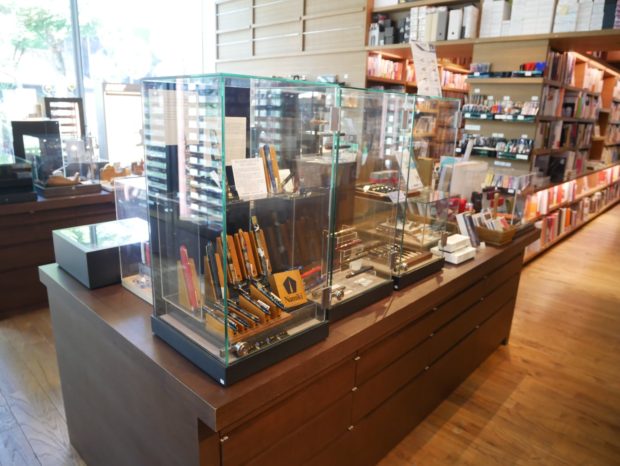 オトナの書斎がコンセプトのこのお店の中でまずみていただきたいのは、壁一面に並ぶ世界中の万年筆。ブランドごとに美しく展示されています。