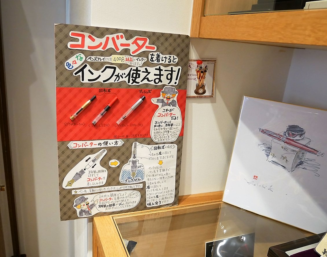 Don't miss the handmade POP in some shops. This is a POP that carefully explains how to use the converter. It is easy for beginners to understand, and it conveys the staff's desire to have many people enjoy pens and ink.,ja