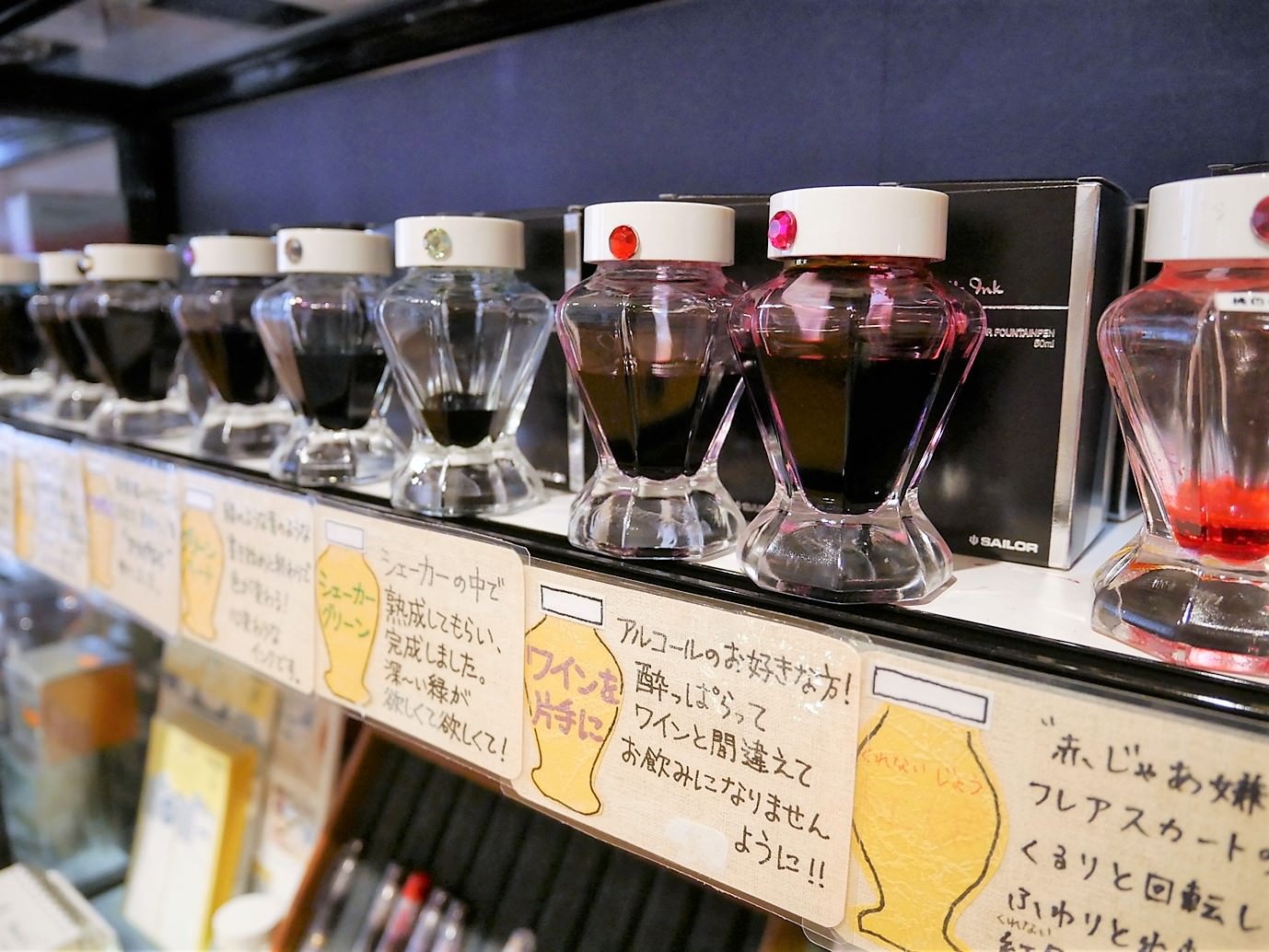 筆記具の品揃えがすばらしく、万年筆やガラスペンが並んだ売場はため息がでそうなほどの美しさ。