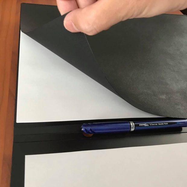 片方には紙を挟むスリットが入っています。こちら側が筆記スペースですね。