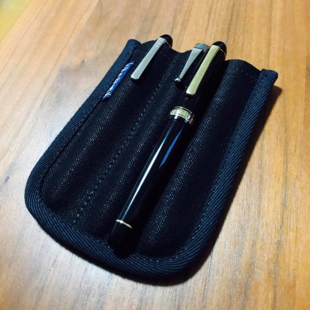 普段よく使う筆記具を入れておいてもいいのですが、やっぱりこの作りだと万年筆もよく似合います。私は祖父の形見であるPILOTのカスタム67(今は廃盤)の細字・中字・太字を入れています。