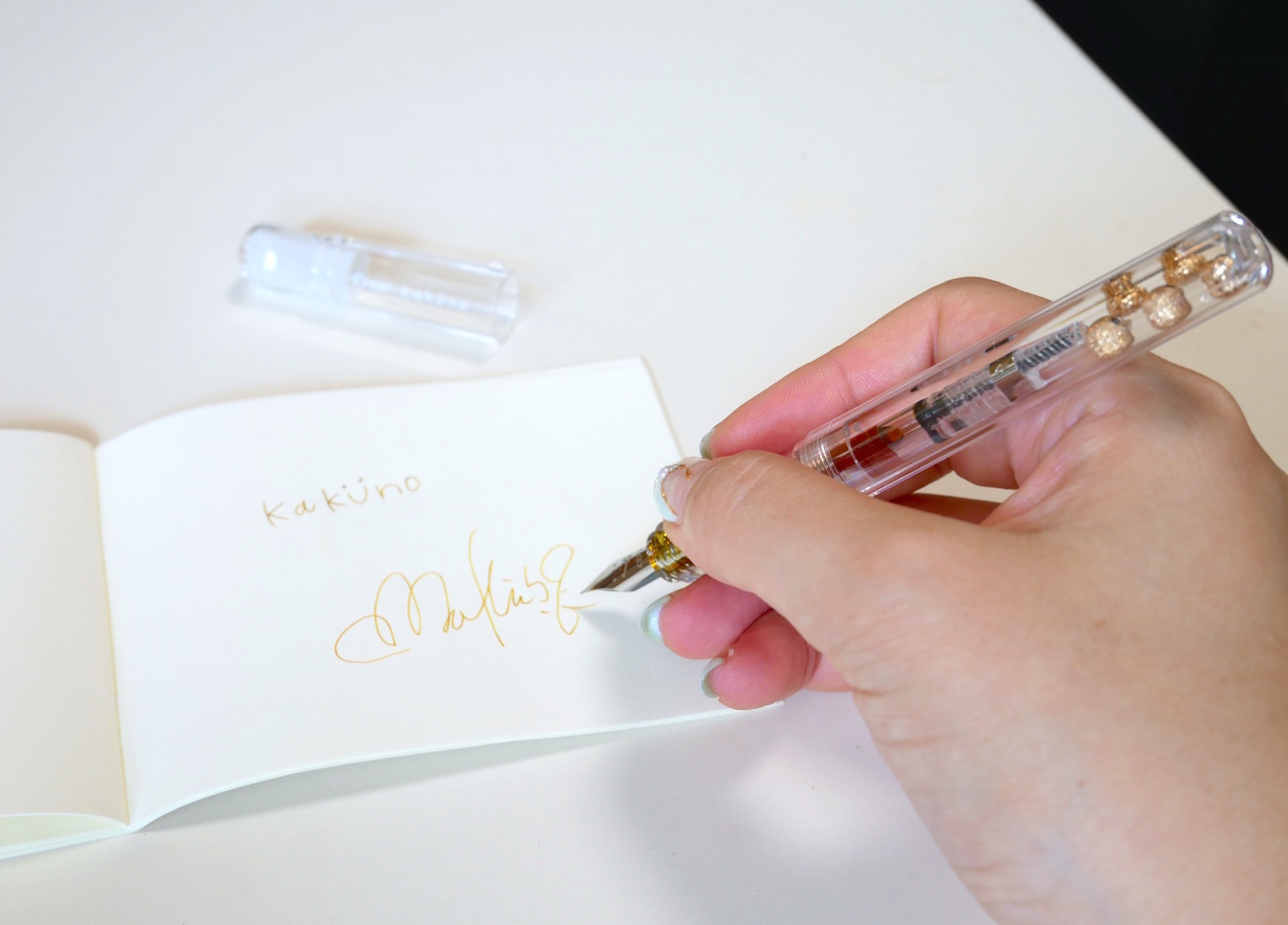 いろいろな楽しみ方ができる「カクノ 透明軸」。すでに万年筆ライフを満喫している方にも、これから万年筆にチャレンジしてみたい方にも、ワクワクする1本になりそうです。
