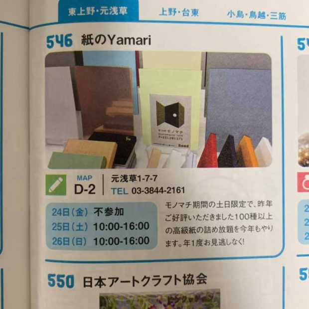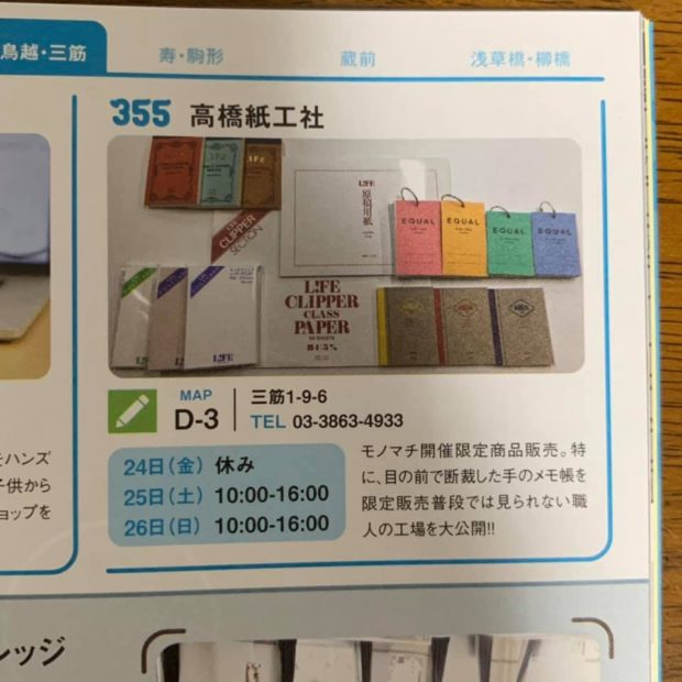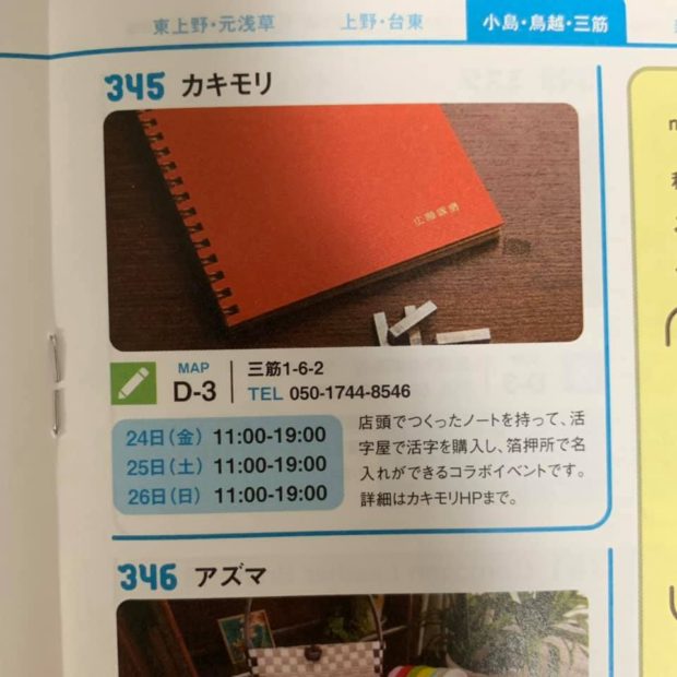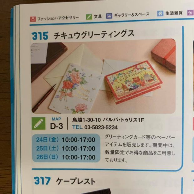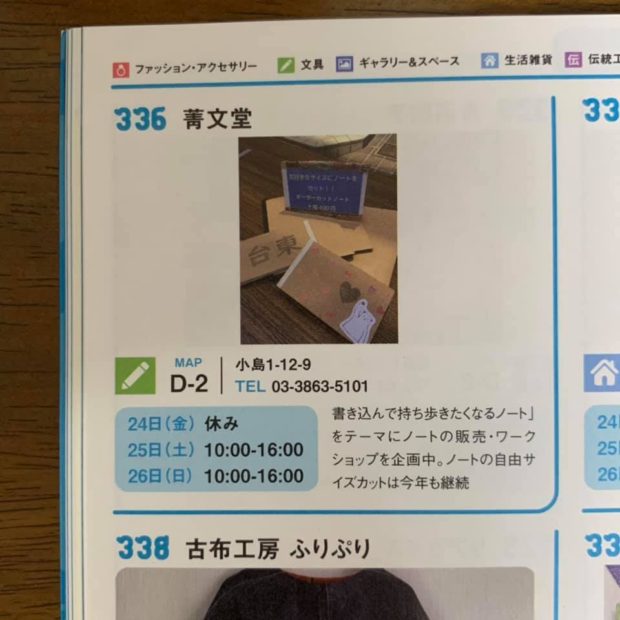 さて、今回は特別にお先にパンフレットをいただきましたので、文房具や紙製品を扱うお店の情報を写真でお伝えしますね。