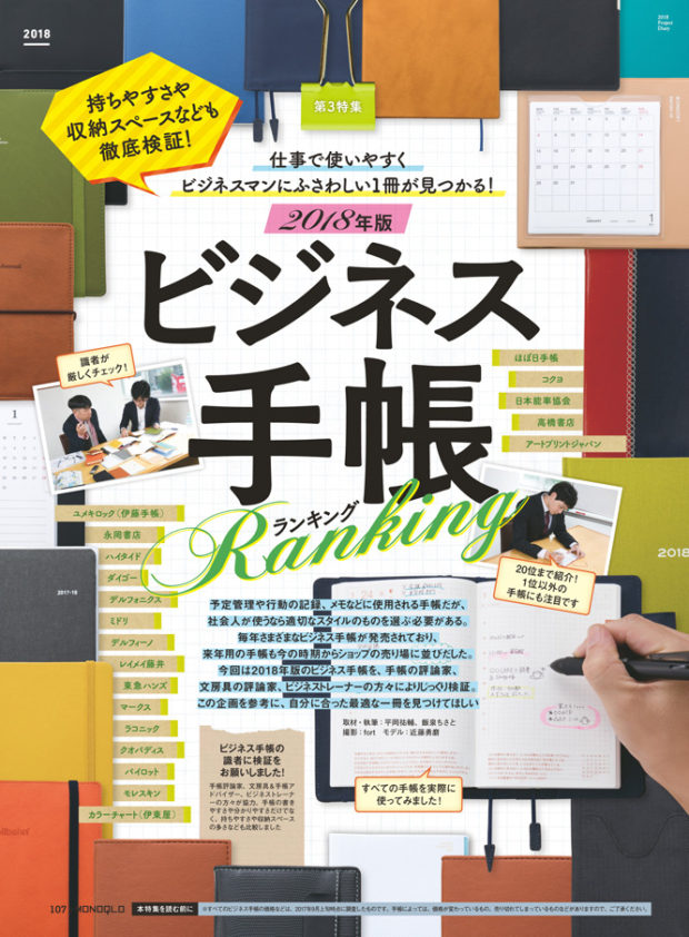 第3特集「2018年版 ビジネス手帳ランキング」で手帳をご紹介しています。