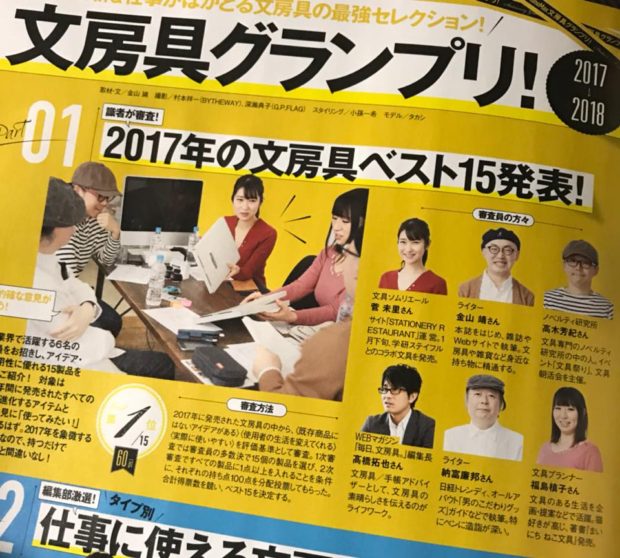 1月10日発売のモノ雑誌「MonoMax(モノマックス) 2018年2月号」の特集「最新&仕事がはかどる文房具の最強セレクション!文房具グランプリ!(2017→2018)」に編集長のたかたく(髙橋拓也)と副編集長のまき(福島槙子)が掲載されました。