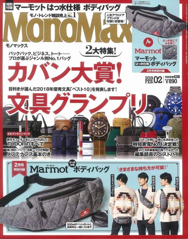 1月9日発売のモノ雑誌「MonoMax(モノマックス) 2019年2月号」の特集「文具&デスク雑貨グランプリ」に編集長のたかたく(髙橋拓也)と副編集長のまき(福島槙子)が掲載されました。