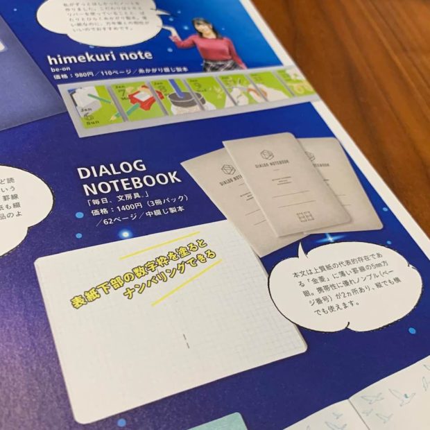 また「毎日、文房具。」がメーカーとして企画した「DIALOG NOTEBOOK(ダイアログノート)」が「爆発的進化を遂げる大注目の文房具 ノートビッグバン」という特集の中で、さまざまな新しいノートと一緒に掲載されています。