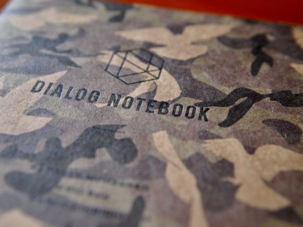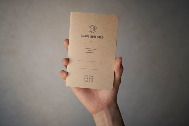DIALOG NOTEBOOK is a small and elegant notebook,can very easy hold by one hand.I like this identity.This photo is a very direct idea for me.I illustrate a DIALOG NOTEBOOK holded by hand.