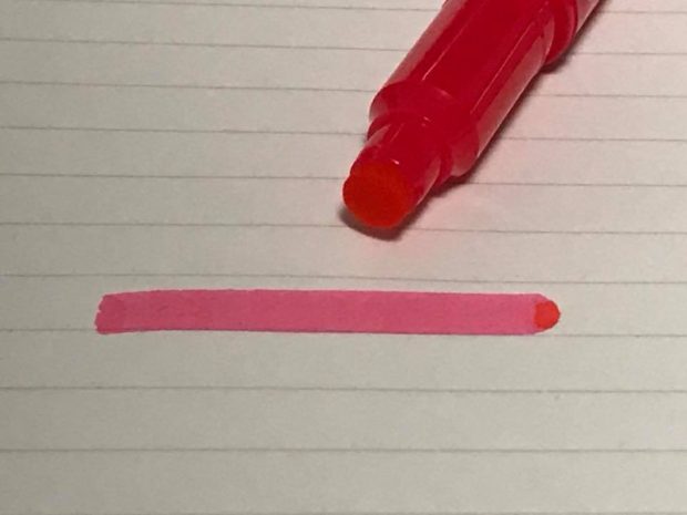 一見よく見かける、マーカー用の太芯と文字を書くための細芯があるタイプ、かと思いきや太い方の芯が変わったかたちをしています。