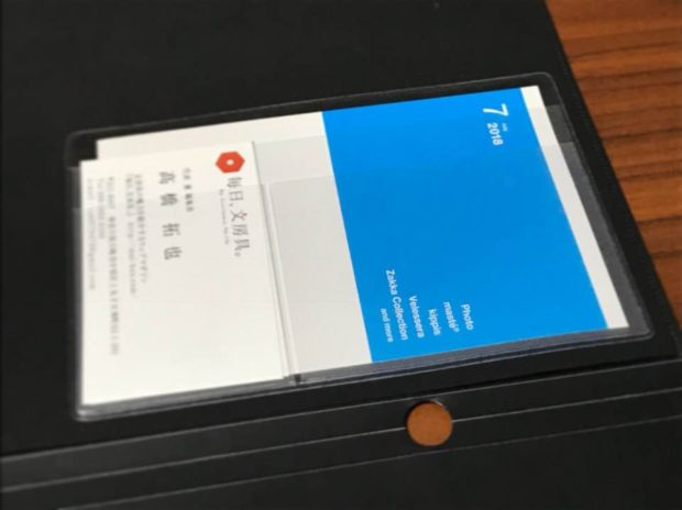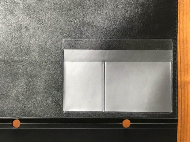 透明のポケットなので名刺を入れると、誰のものかの目印にもなる点もいいですよね。