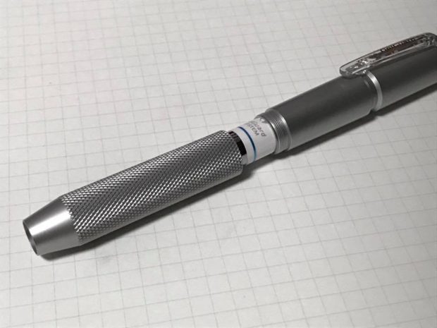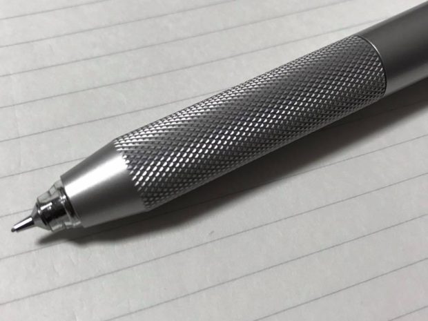 また、グリップ部分は製図用のシャープペンなどでよく使われている「ローレットタイプ」なので滑りにくいです。さらに、重心も低くなり、筆記が安定します。