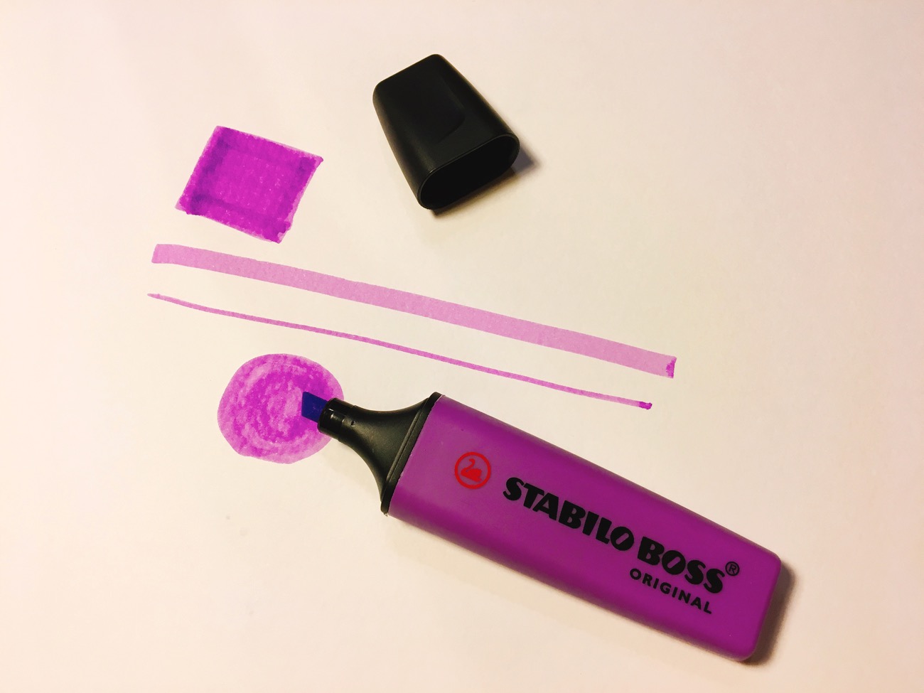 このパープルは、日本では「スタビロ 蛍光ペン デスクセット ボス」セットでしか手に入りません!