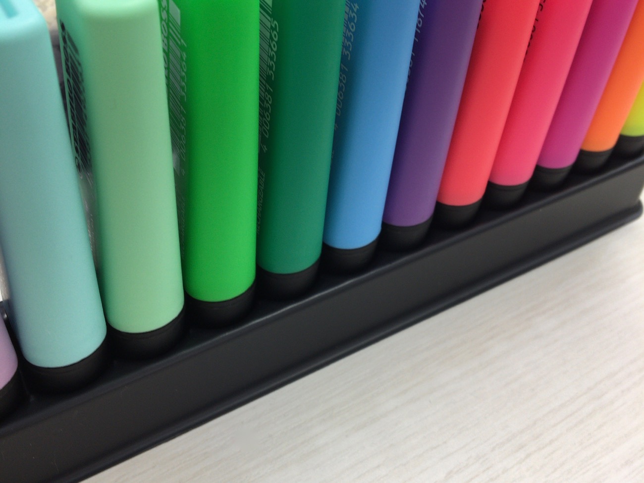 今回オススメしたいのは、オリジナルとパステルカラーに日本未発売のパープルが追加された、15本入りのデスクセット。