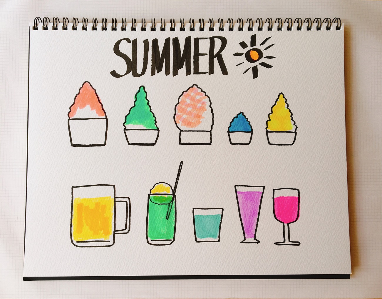 太いマーカーで線を描いて、ボスで色を塗ってみました。