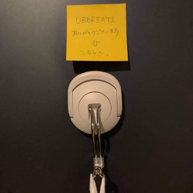 ということで我が家では、UberEatsに置き配をお願いする際にはこちらの「超強力マグネットフック タフピタ」を設置して、こちらに引っ掛けてもらうことにしました。