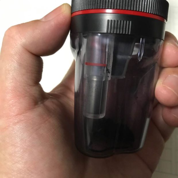 だいたい2.5cmぐらいの長さまで穴を空けます。赤いラインが目印です。