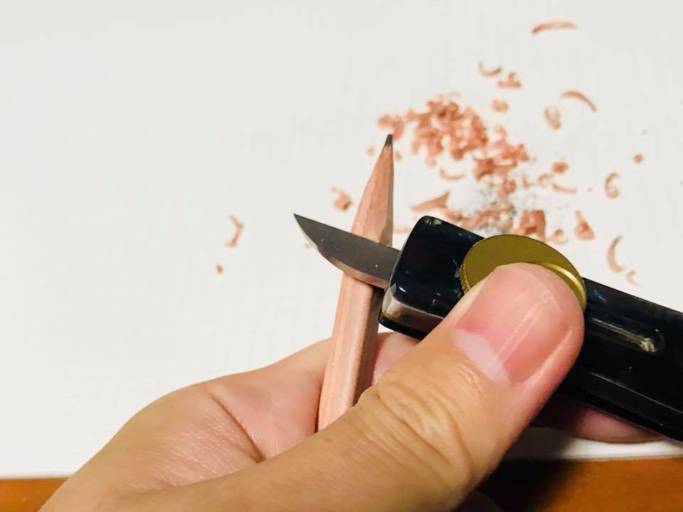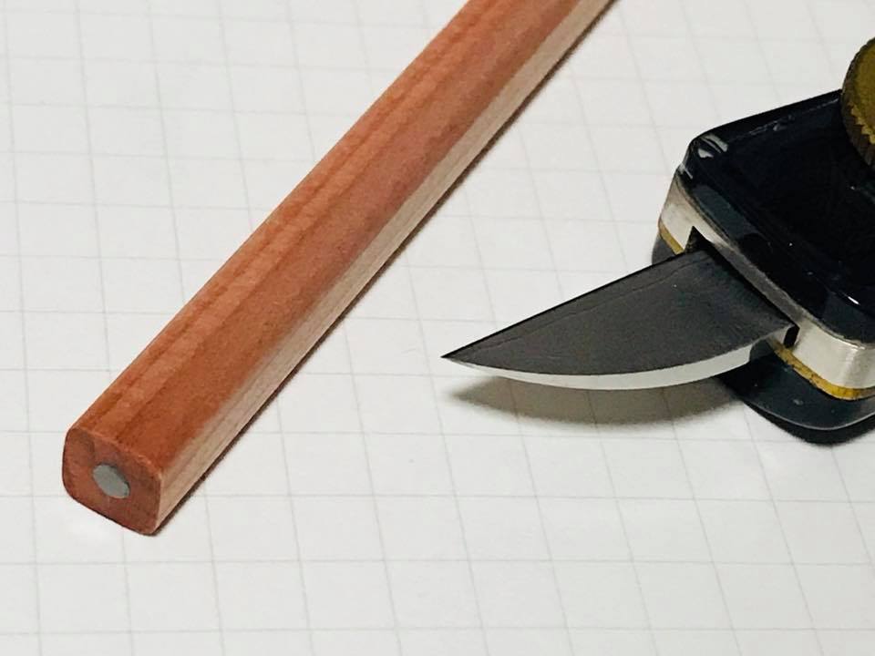一本削ってみました。(削るために使ったのはFEDECAのナイフ「ナーゲルスライド ショート」です。)