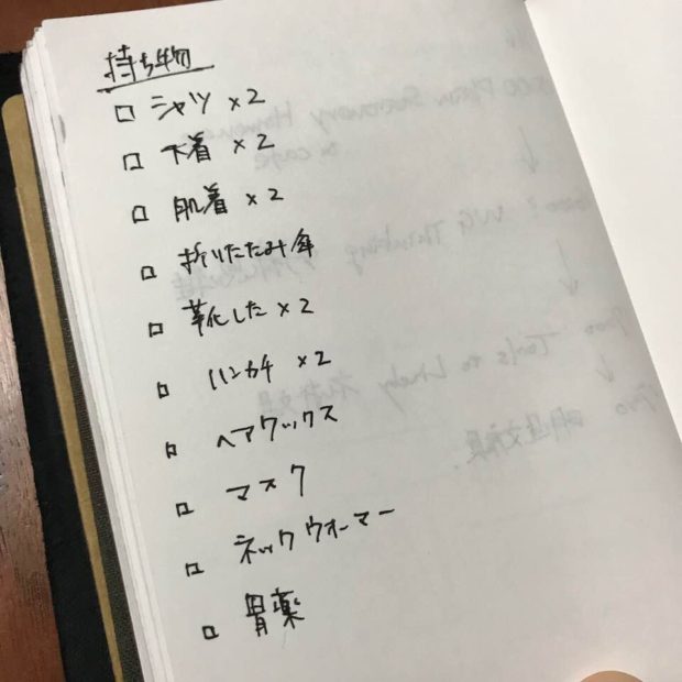 ジッパーケースは買い物の際に財布として使いましたが、ノート部分には持ち物リストを書いたり、
